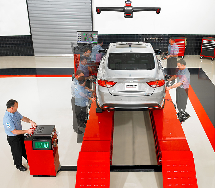 레이저 또는 3D 시스템을 사용하여 바퀴 각도를 측정합니다.